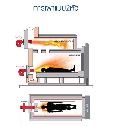 ห้องแรกใช้เผาศพ และห้องที่สองเผาควันซ้ำ เพื่อลดมลพิษ